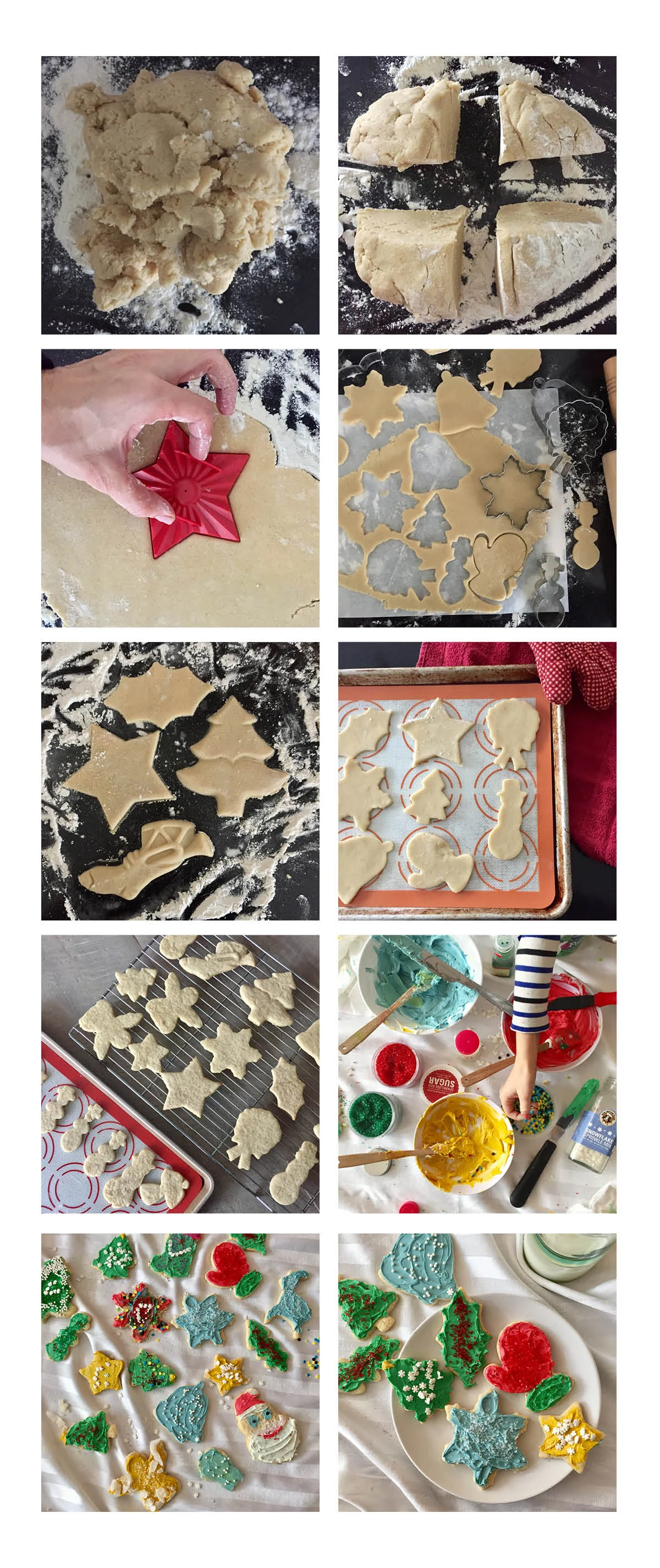 Holidays are really about memories we create with our family. Not the hustle, bustle and whether or not you were able to score a Hatchimal before they sold out. One way my family takes a breather from the craziness is to make holiday cookies together. The kids LOVE making sugar cookie cut outs. We have old cookie cutters, passed down from my mom that we used when I was a child. I make a buffet of bowls filled with sprinkles, frosting, little candies and really anything that will stick to cookies and let them have at it.