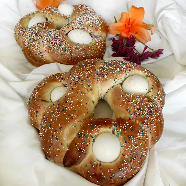 This year, my mom and I decided to make the bread together. I have never made my own before so I decided to make some additions like sprinkles, lemon zest, a bit of sugar and almond extract to my mom’s recipe for a sweeter, more colorful bread. Also, I made mine into a wreath like I have seen in Italian bakeries. She stuck to her tried and true Calabrese recipe. Both came out wonderfully and I’m so happy I finally learned to make it.