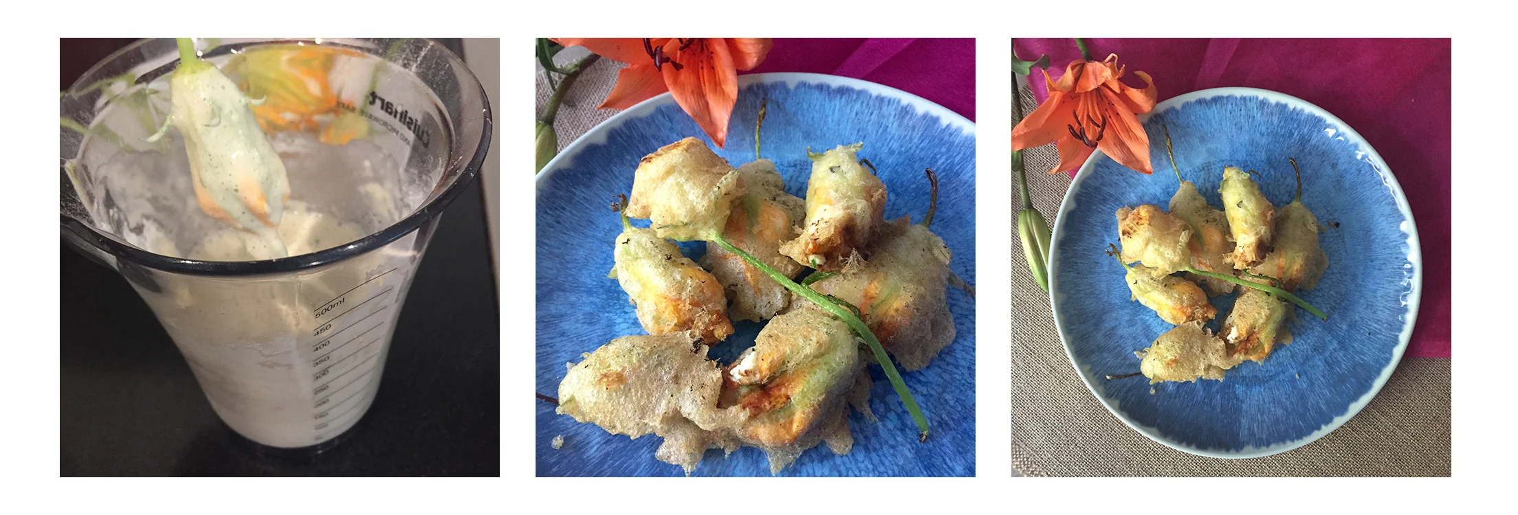 Luckily, my mother grows zucchini in her garden and supplies me with a steady supply of blossoms. So, as soon as I got home, I got to work on recreating this simple but delicious dish.