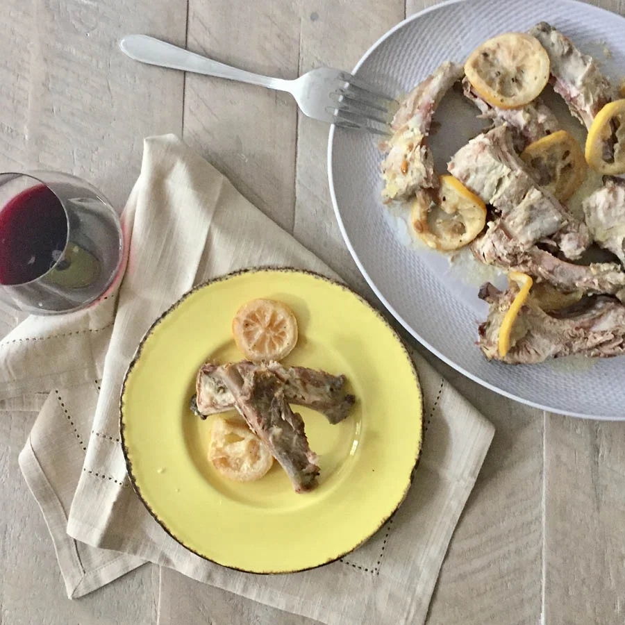 - Cut up ribs, garnish with the cooked lemon slices and pour the gravy all over them. You won’t miss the summer grill one bit!